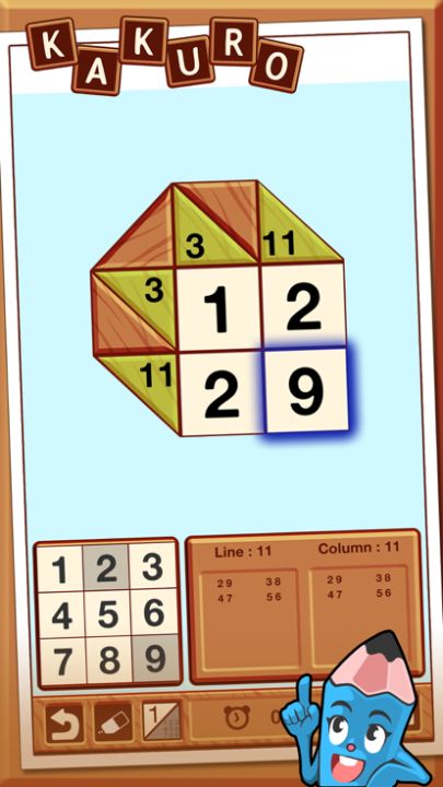 数谜又称为交叉求和,是一款结合了数独和填字原则的日本益智游戏。找出总和等于网格边缘所示数字的正确数字组合。在任何给定的总和中,每个数字都必须是独一无二的。当网格的每个单元格都填入正确的数字后,您就赢得了游戏!