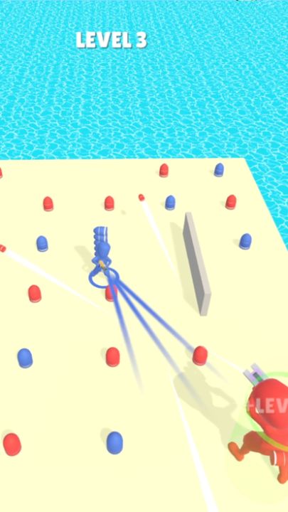Collect the balls of your own color on the ground and team up with your allies. Outperform your enemies to push them out of the stage and proceed to the final stage as a team!