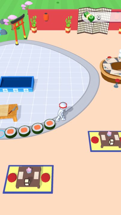 Collect the right ingridients. Roll and serve the sushi to your waiting customers.