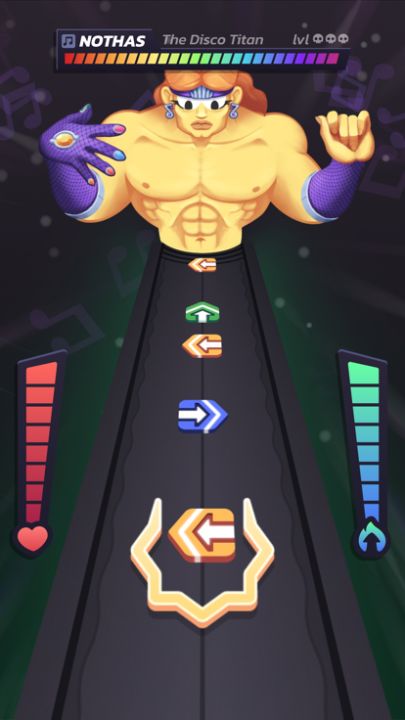 Excalibeats is a rhythmic game where you'll face Nothas, The Disco Titan, in a musical duel. Armed only with the swipe mechanic you must block his attacks while looking for an opening to attack. With each blocked attack you will increase your combo b...