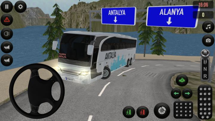 En iyi otobüs simulasyon fiziğine sahip bu oyunumuzda retarder ve havalı fren, motor frenleri eşliğinde oldukça yüksek deniz kenarı dar virajlı yollardan geçeceksiniz.