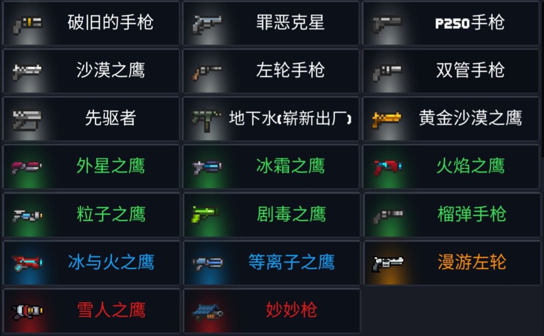 地窖武器共399件+4件未收录 (糖葫芦,鞭炮,窜天猴,火箭礼花地窖未收录,手刀不计算在武器内) 可锻造武器356件 手枪(20) 步枪(58) 霰弹枪(25) 火箭筒(15) 激光枪(24) 弓(25) 刀(68) 法杖(25) 投掷(25) 杂项(71) 不可锻造武器47件 联机戒指(4) 合成武器(17) 配件进阶(15) 古旧遗物(3) 钓鱼获取(8) ※部分武器可通过多种途径获得,不重复