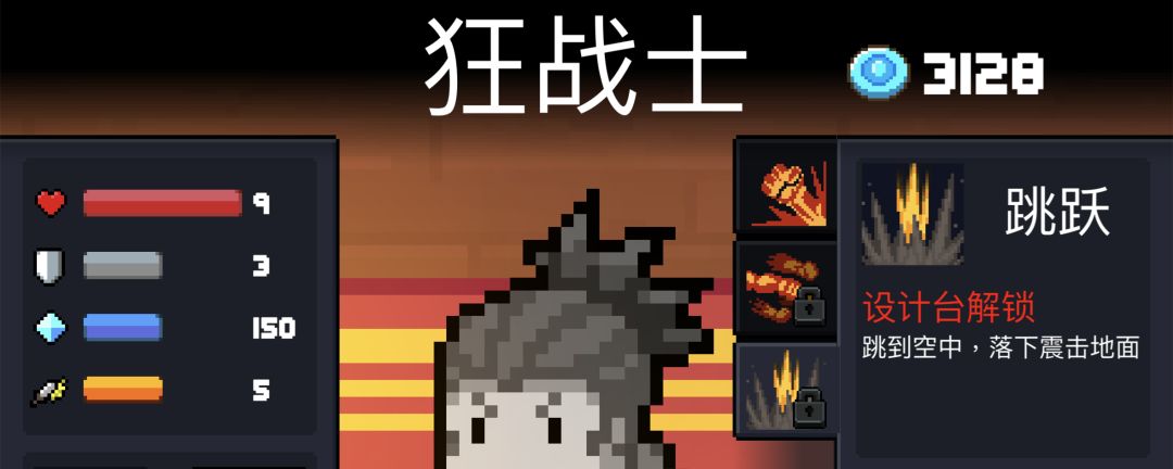 元气骑士中狂战士的三个技能分别是狂暴、散打和跳跃,一技能狂暴可以进行一次快速攻击,在升级之后会附加高额的暴击率,如果使用高攻速的武器可以在使用技能时多次触发高暴击伤害的效果。二技能散打可以让短时间内攻击变得分散,在每次攻击后身后会有残影进行额外的攻击,对近战和远程武器均有效果,是简单粗暴增加输出的技能,大幅度提升伤害和清怪效率。三技能跳跃则是可以让狂战士跳到空中,落下震击地面。 狂战士的初始武器为