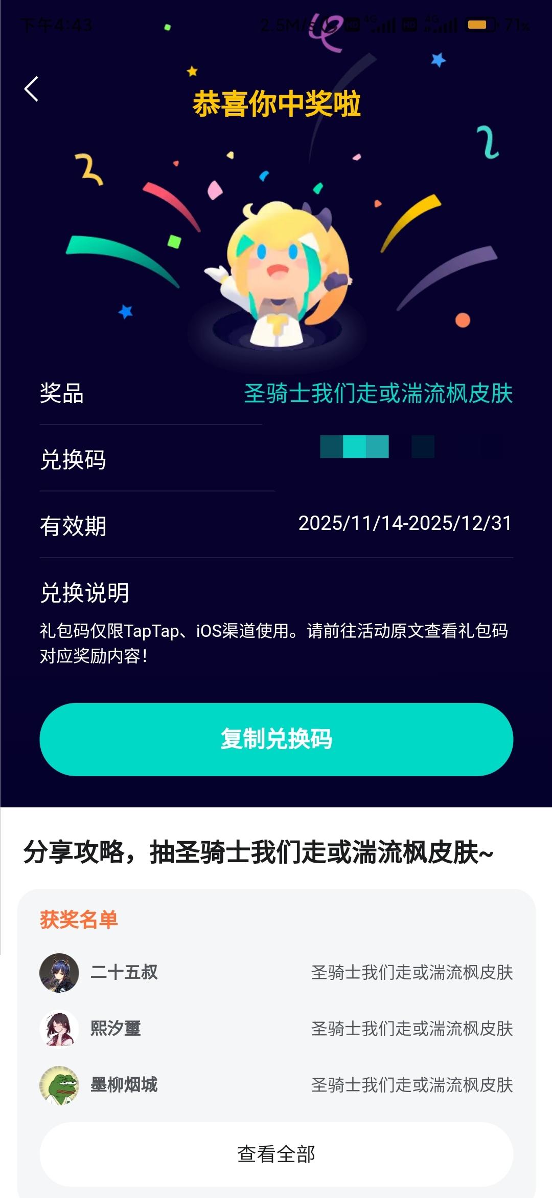 亲爱的小骑士,这是您的【道士律法】兑换码(仅限TapTap/iOS 渠道使用,兑换截止时间:2026/1/31 18:00,请注意及时兑换,过期未兑换的不予补发哦):