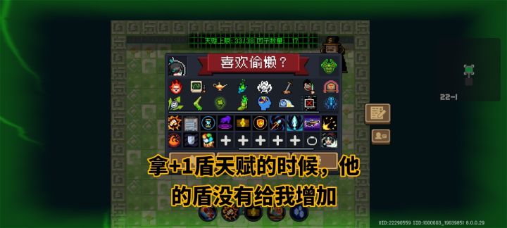 太离谱了,凉屋玩这个邪王模式,天赋加一个盾拿的时候,他根本就不增加这个盾,但是找这个商人把天赋遗忘掉,就会少一个盾太离谱了,卖了两滴血拿着4个盾就这么全刷没了,前三次的时候没注意,后来发现本来12个盾,就剩10个盾的时候感觉不对,然后试验了一下,果然是这样少的。离谱!离谱!#游戏日常 #元气骑士 #游戏攻略 #bug #bug反馈