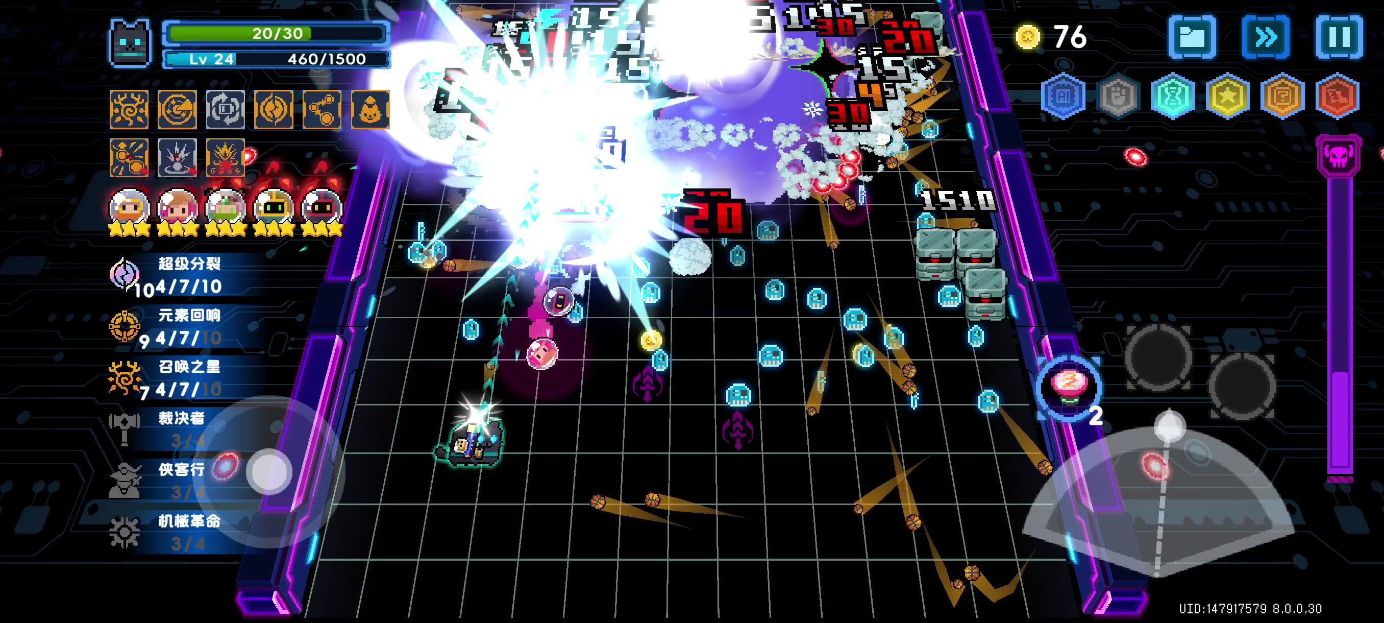 侠客行裁决者之类的还好一点,这个超级分裂加元素真的是特效子弹一大堆,老年机根本带不动呀,打最后boss的时候直接卡死在那边了。