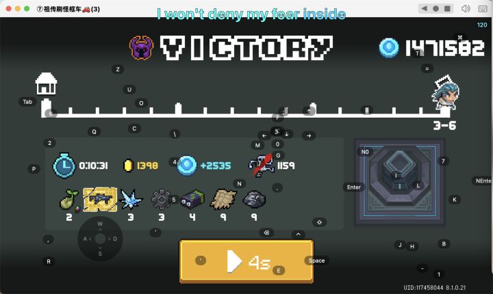 今日份②双boss试炼车🏎️、成就⑦祖传刷怪框车🚗、活动币⑨四村超速通车🚗和怪框⑪虚空入侵速通车🟣部分日常分享~##元气骑士##
