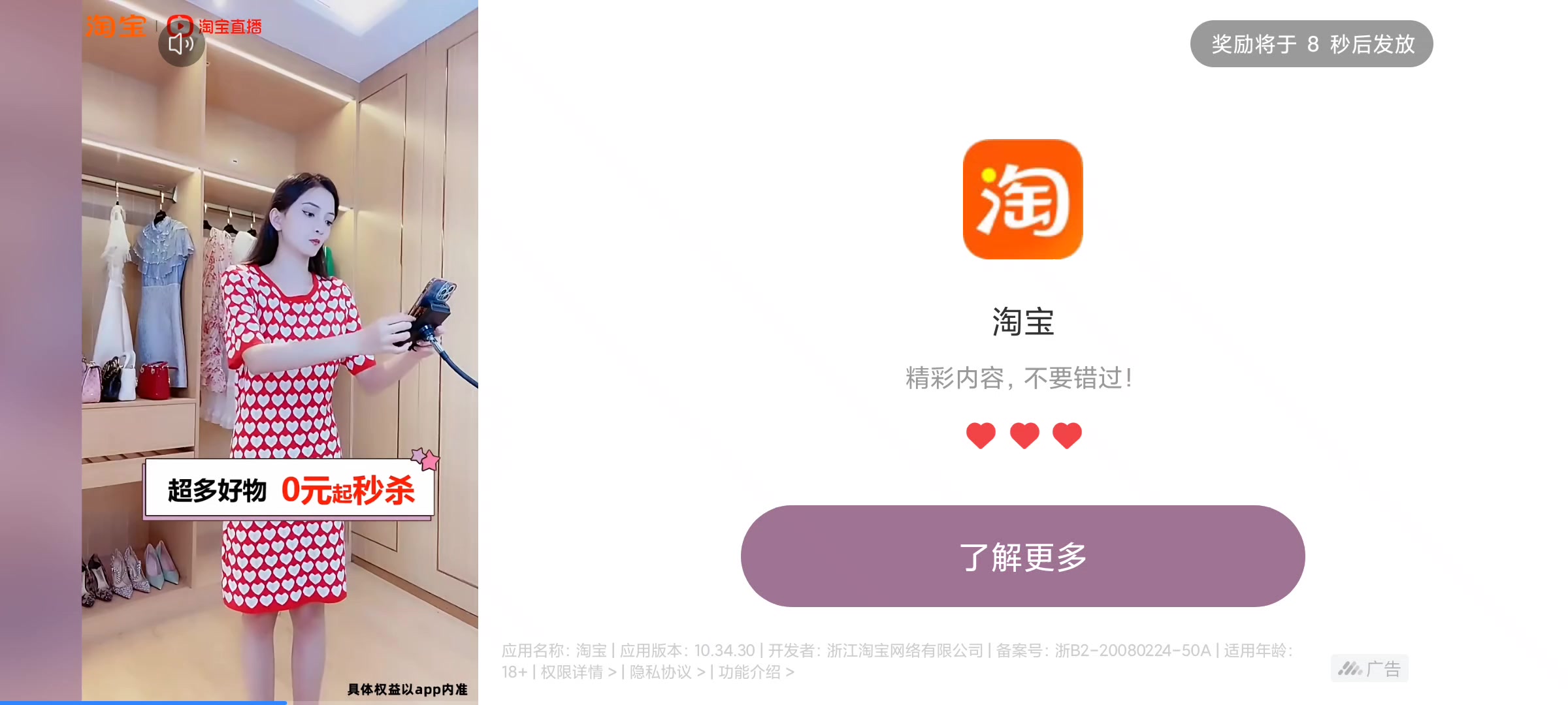 无限停在8秒还没有退出键的内置广告