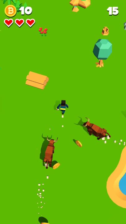 Use joystick to dodge the chasing bulls stampede and run as far as you can to...