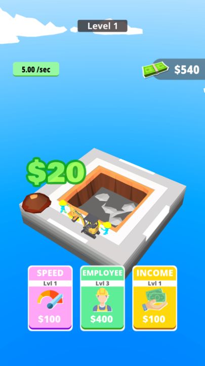 Hire workers and upgrade machines to construct quicker. Create your own city.