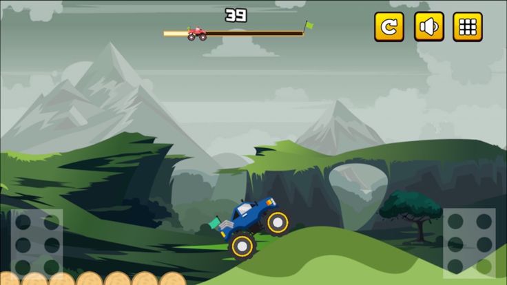 游戏采用了真实的物理引擎,你需要掌控好大脚车的速度才能在错综复杂的赛道上(黄昏下的田间小路,充满生机的树林,浩瀚无边的沙漠)顺利通过。
