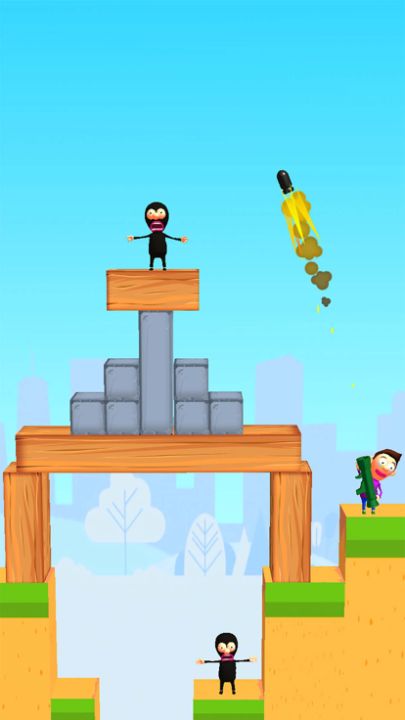 Just pull and throw bombs! If you can kill all the enemies in one shot, great!