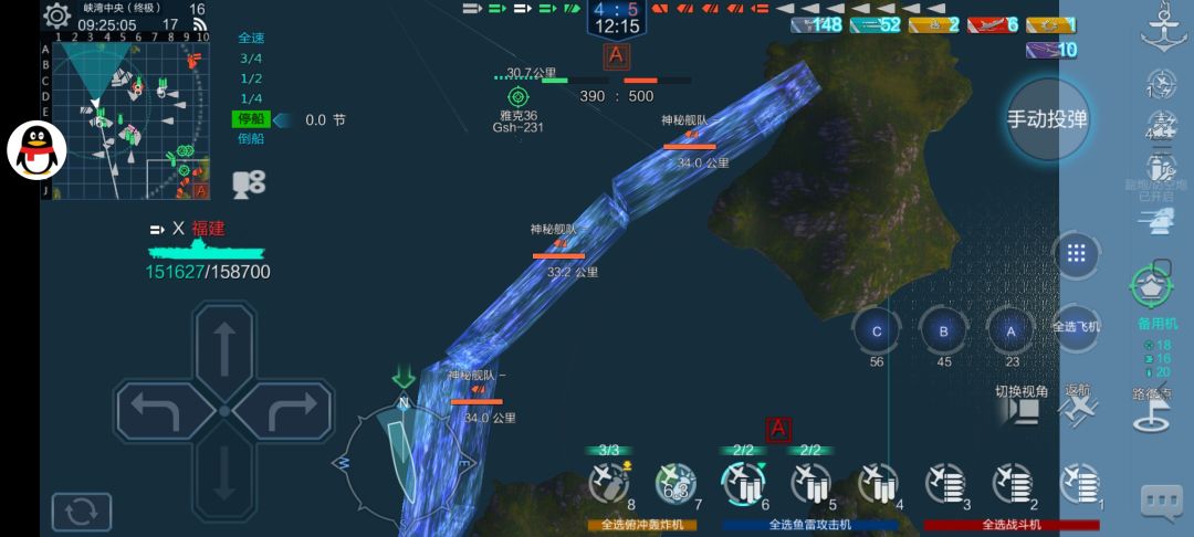 难度:较高 推荐阵容:超航或超战至少一个,其它顶战,不推荐普通权重航母,驱逐和巡洋 作战内容: 1. 本关为护送任务,硬性要求我方察里津在抵达A点前存活。 2. 我方舰船需要及时消灭对察里津威胁度高的敌舰,包括护送路线上的敌方战列舰,右上角的空军基地和敌方航母加贺,并在敌方空军来袭时提供防空火力掩护。 3. 敌方在A点前设置了三块阻挡前进路线的AT力场,无法被任何形式的炮火攻击,包括炮弹,鱼雷和航