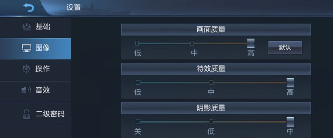 之前每次进游戏都会卡个几十秒(iOS),今天偶然发现打开设置,图像,然后点一下第一行的画面质量最右边的默认,游戏瞬间就变流畅了,可以在游戏开始前就进去看到读秒,而且画质啥的也没有降低。具体是啥原理我也不知道我也不敢问斜眼笑[表情_斜眼笑]