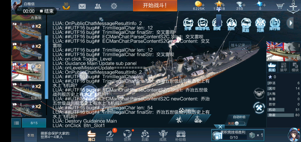 加减速转舵飞机渔雷副炮都正常,唯独开不了主炮 最好玩的是最后还赢了 猜猜我的渔雷命中数