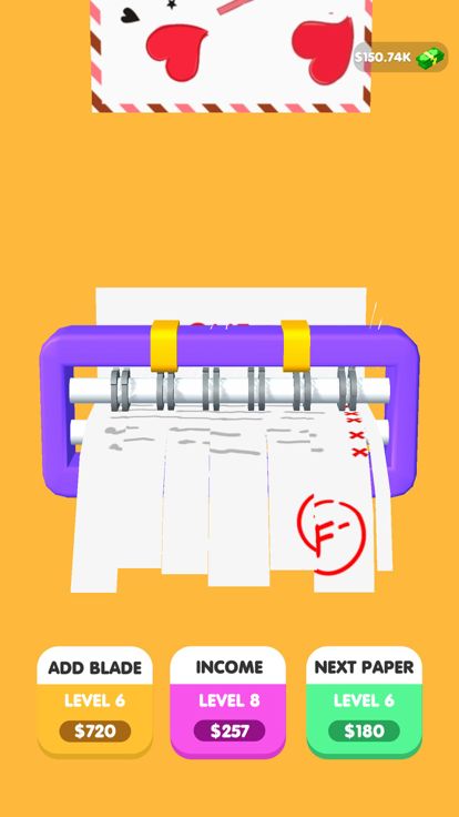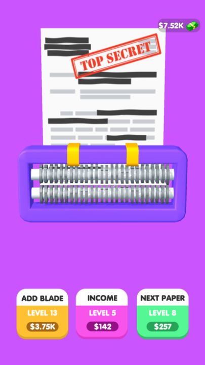 You gain money while shredding and then upgrade your shredder to gain more!