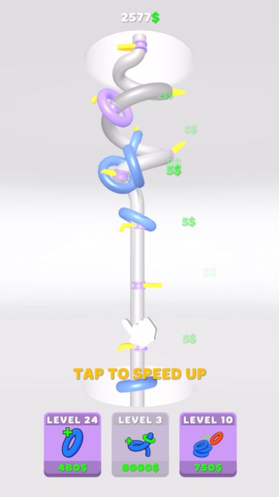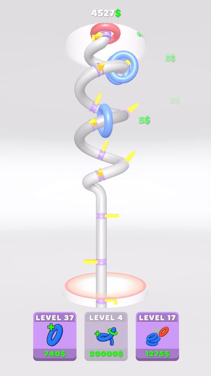 - Upgrade the hoop count, the pipe or merge the hoops with earned money.