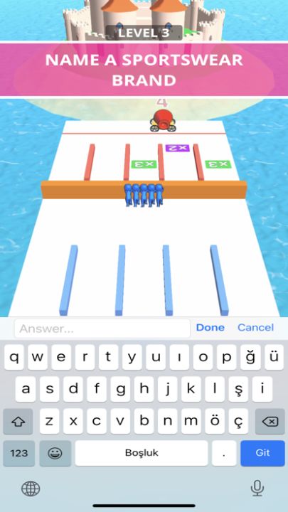How good is your knowledge? Answer the questions and earn more stickmen. Then send your stickmen through multiplier gates and push the enemy. Longer answers give you more stickmen. Can you pass all levels?