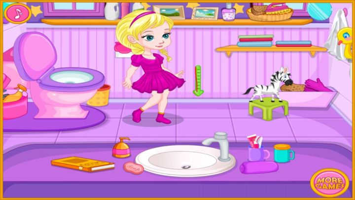 Baby elsa is a big girl now and wants to learn to go potty on her own. will you help her in the learning? first help her find all the things she needs like tissue paper, towel, liquid soap, book or a toy. next help her undress her skirt and panty and...