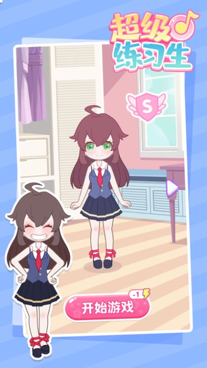 《超级练习生》是一款画风二次元的偶像养成模拟小游戏。游戏中,需要根据音乐节奏,在合适的时机进行点击屏幕的操作,触发节奏打击。最后根据表现进行最终的结算打分。玩家开始需要选择一个“角色”进行扮演,在偶像养成中,需要帮助已有的角色进行体验偶像工作,从体验偶像工作中获得演出经验,来提升玩家已拥有角色的知名度,十分有趣。