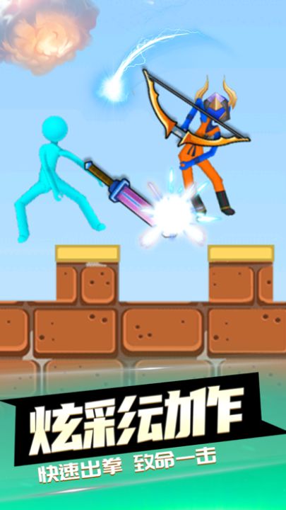 《激战火柴人》是一款超好玩的火柴人动作格斗游戏。好斗的火柴人们一定要通过一场比武来确定谁是最强王者。游戏操作非常简单,通过虚拟摇杆控制火柴人的移动,通过灵活的移动争取有利的攻击位置将敌人击败。
