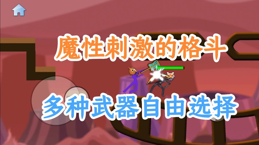魔性刺激的火柴人格斗,多种武器和超多皮肤自由选择。