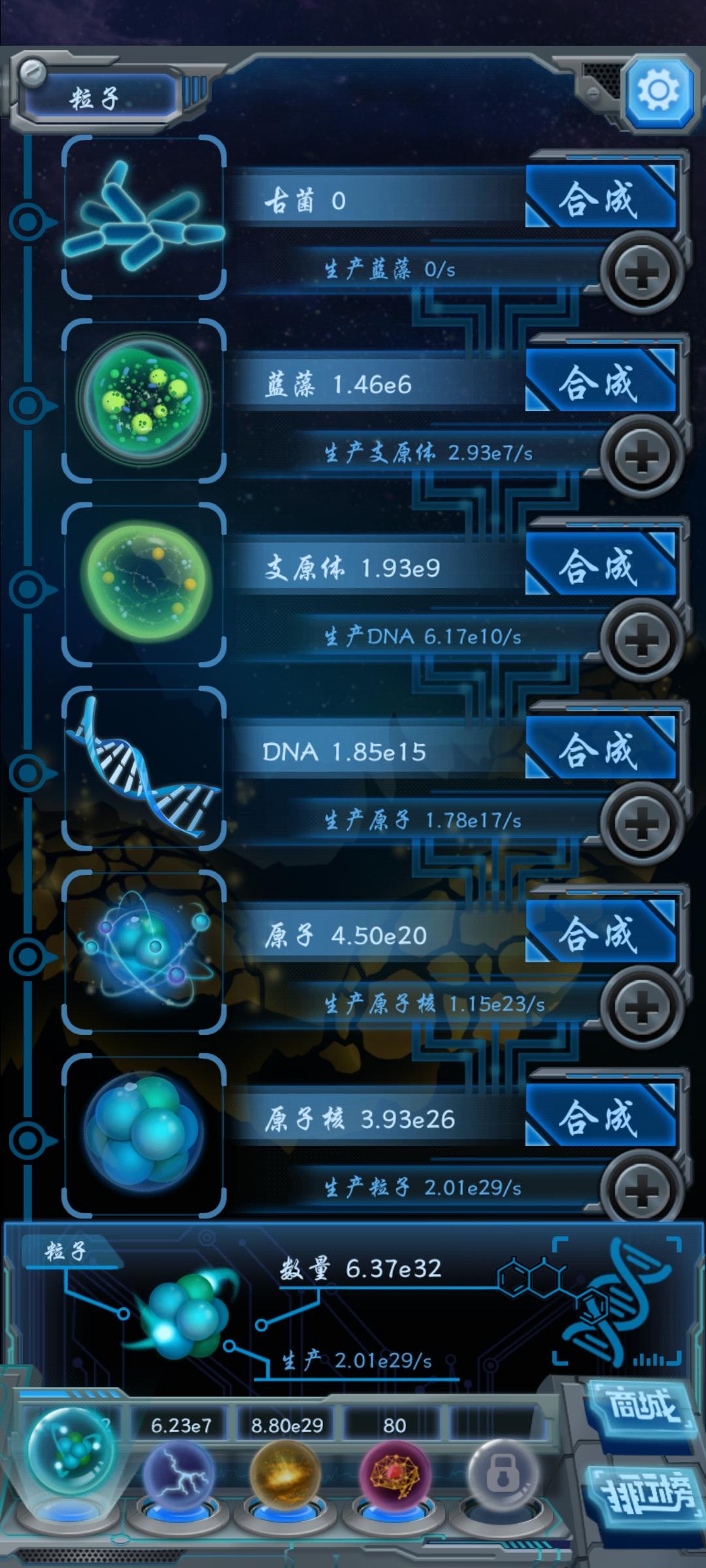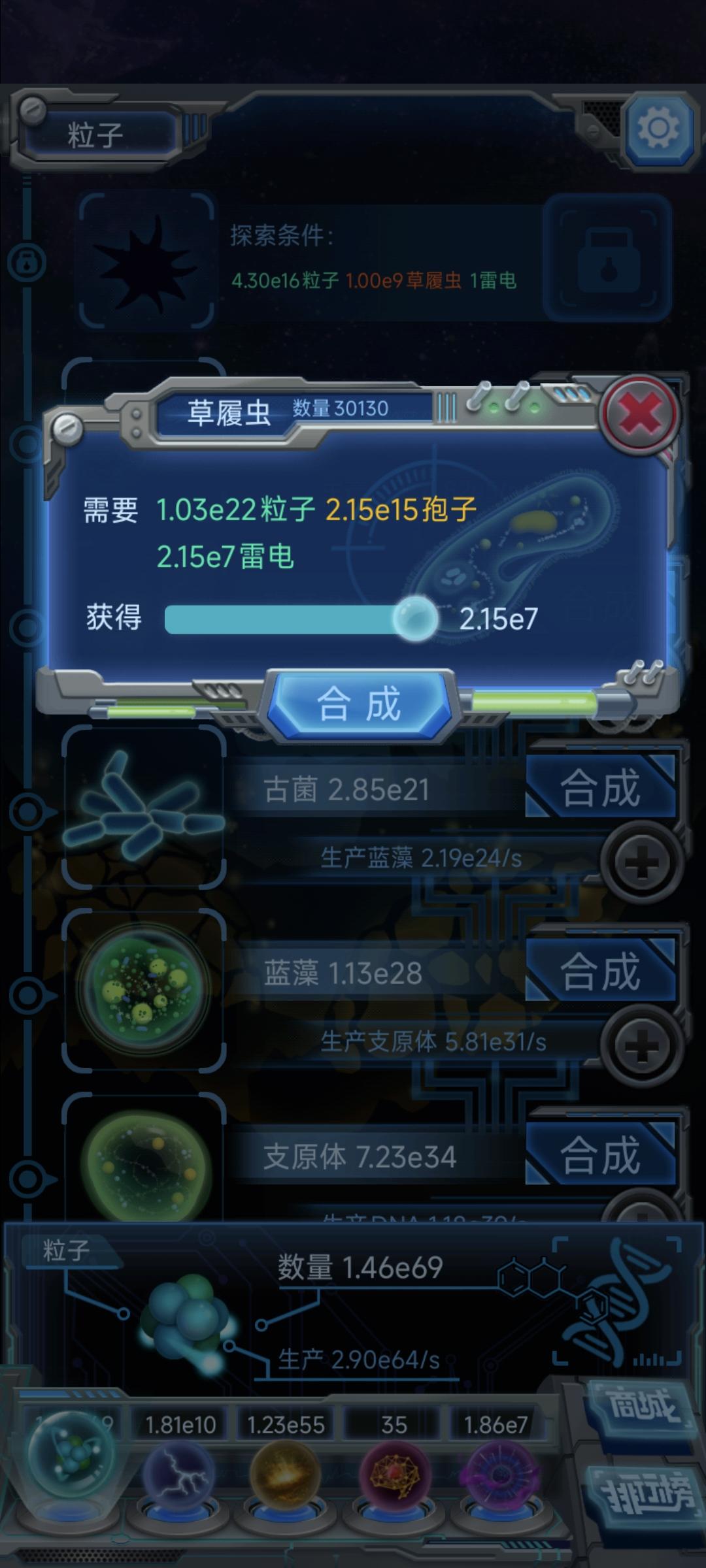 今天早上本来合成几个甲龙都困难,但是一晚上挂机翻倍领取后有4.3万智慧,用扭曲相当于86个小时,快速发展居然直接冲到了母体, 主物种一般低于最新开的物种2个等级,就比如我刚刚开了母体,毁灭者是我的主物种,但并不是,我喜欢先让下一级物种程度自由(完全用不完)之后再开始合成上一级,不过不要忘记最新开的物种1/10/100/1000/1万个这样合成之后去提升复制等级,用好了就发展很快 简单来说就拿我图里