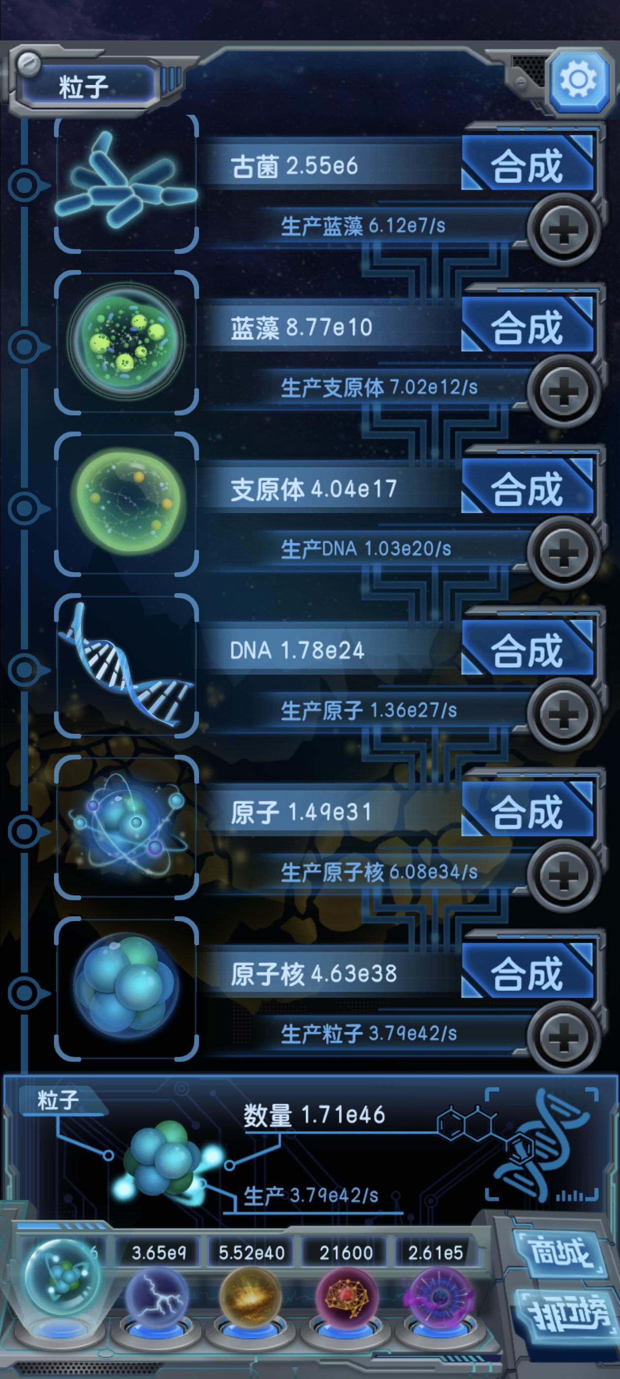 为什么游戏后期会迎来爆发期??我给你们解释一下,由于物种资源需求量的逐渐提升(每解锁一个物种,下一级物种的次级物种需求量就每涨一个数量级,例如解锁大白鲨需要e12个盾皮鱼,解锁大鲵需要e13个大白鲨),主物种时长会逐渐增加(规律适用于主物种是文昌鱼与盾皮鱼及之前),同时会刺激雷电秒产超幅度的提升。雷电超幅度增加到一定程度,并且有了复制等级与生产等级的加持下,主物种时长会逐渐缩短(适用于文昌鱼与盾皮