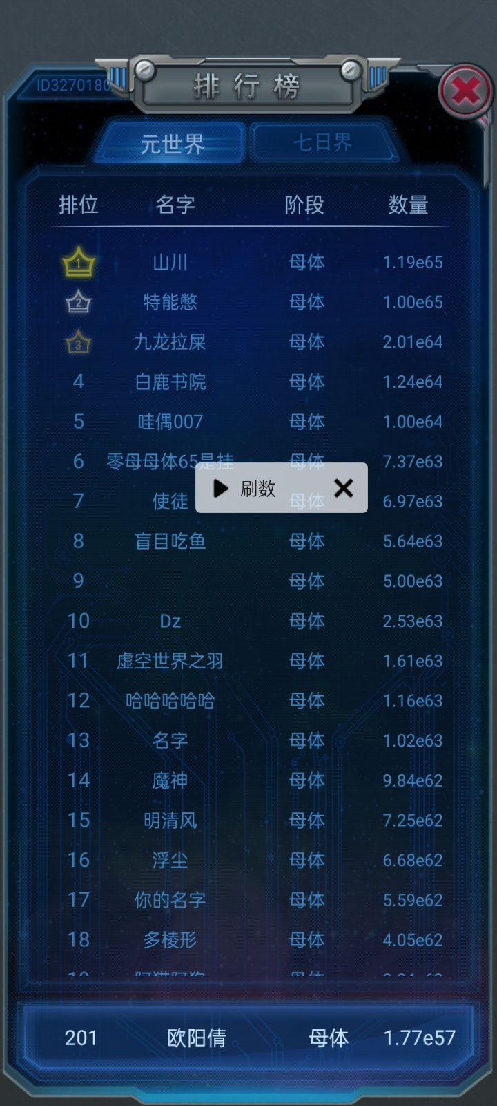 继之前的帖子,今天期末考完了,可以开造了 想要计算的是更快到达e78宇宙的方法 现在依然缺点数据 (可以更精准,虽然计算本身就会带有较大偏差) (同时有点强迫症以及写函数的时候想有更精确的数据,以及精确数据很有可能为几乘以几的多少次方,比如雷电升级所需是50的n-1次方,计算过程中可消,更加简便) 一个小的进展是需要宇宙复制等级40的时候再向e78这个目标看齐 (之前帖
