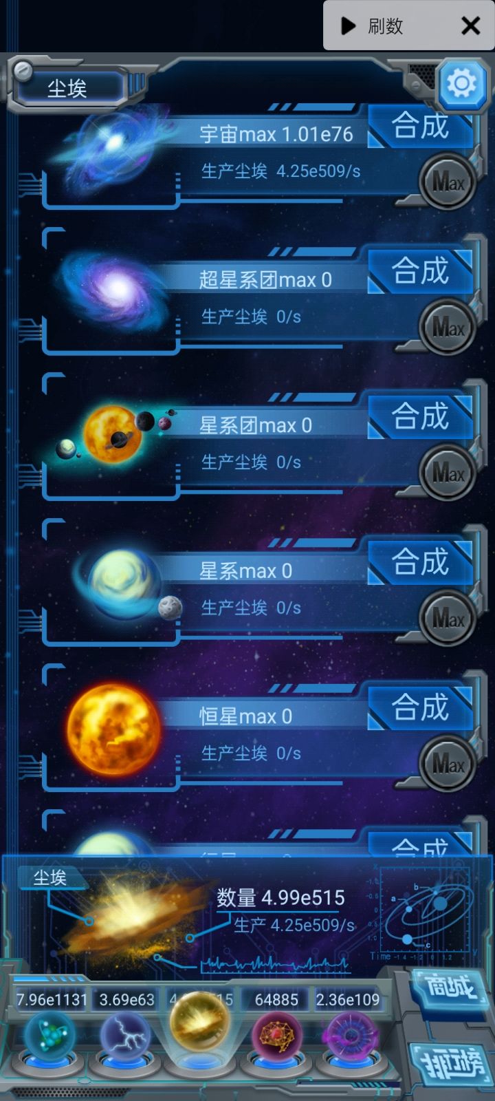继之前的帖子,今天期末考完了,可以开造了 想要计算的是更快到达e78宇宙的方法 现在依然缺点数据 (可以更精准,虽然计算本身就会带有较大偏差) (同时有点强迫症以及写函数的时候想有更精确的数据,以及精确数据很有可能为几乘以几的多少次方,比如雷电升级所需是50的n-1次方,计算过程中可消,更加简便) 一个小的进展是需要宇宙复制等级40的时候再向e78这个目标看齐 (之前帖