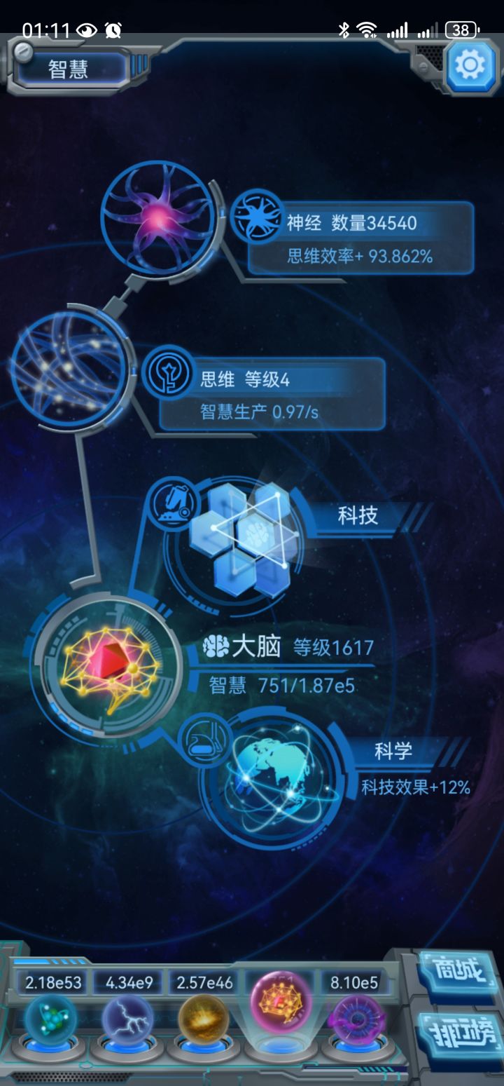 春节重玩,这次打算来个e120暗物质,今天大概是第十六天吧,孢子卡了差不多三天,今天刚刚勉强进入草履虫的时期,而智慧科学系统还差300000智力,差不多还要等四天才能使用科技,现在差不多投入了120万智力进去了,而51科技玩法完全体需要150万智力,现在完全看不到回头钱啊!
