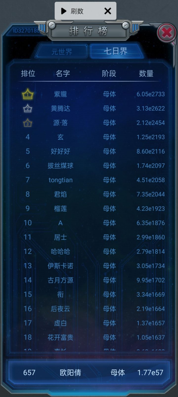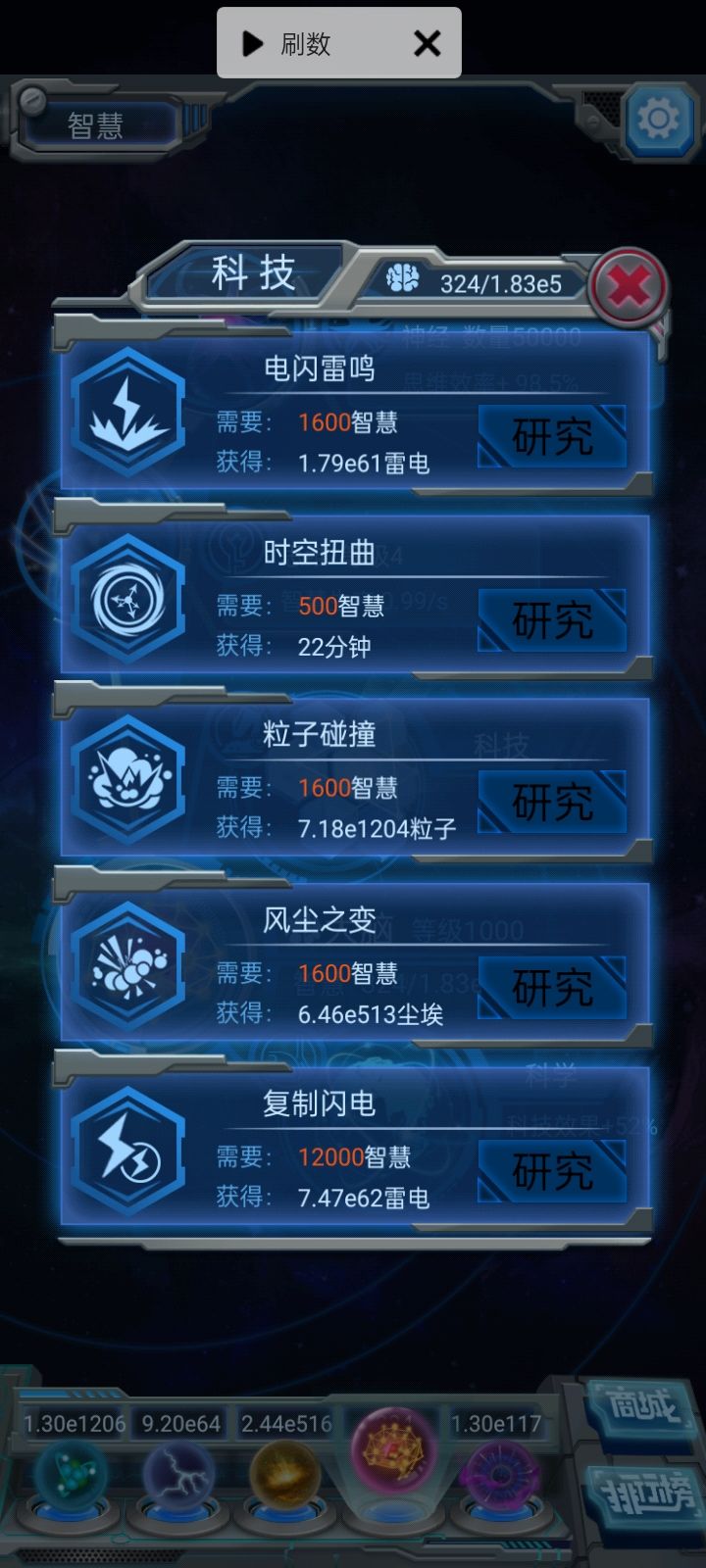 冲榜的话,还是要靠复制闪电,因为后面还是会卡在复制期,最终还是会缺电。暗能力成长,电闪雷鸣>疯狂复制>时空扭曲,相同暗能量投入,复制闪电和时空扭曲产电效率的差距,只会随暗能量越拉越大,更别说满60min加500消耗的设定(上限5000)。电闪雷鸣因为基础倍率太低,相同投入极限情况下,电闪雷鸣的效率也只有复制闪电的31.4%暗能量比较多的情况,仅针对产电效率而言,复制闪电>电闪雷鸣>时空扭曲。冲榜必然靠复制闪电,像你现在这个状态,大概满复制闪电一次就是22000-23000天左右的电,不可能靠自然产出补满复制上限的。开始缺电时,电闪雷鸣先把蓄电池拉到31.8%(高暗能力扭曲补电效率非常低),再复制闪电补满蓄电池,后面全程复制。准备炸前再洗点,点扭曲/暗物质获得相关的暗能力刷够暗物质就可以炸了。