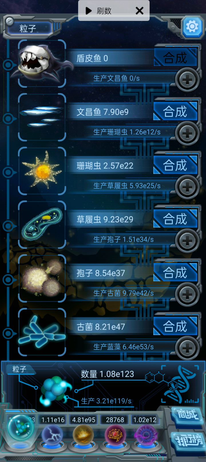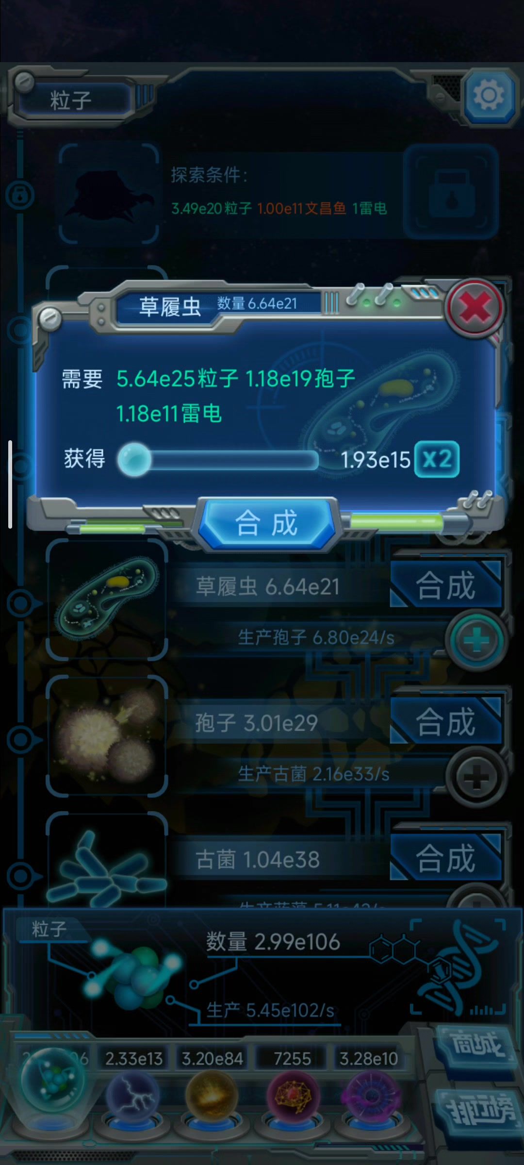 现在雷电合成草履虫秒产2.00e15多一点,3.6倍是7.2e15,珊瑚虫现在效率是2.06e14,我直接再合成1e14珊瑚虫效率不就到e16可以进珊瑚虫扭曲期了吗?