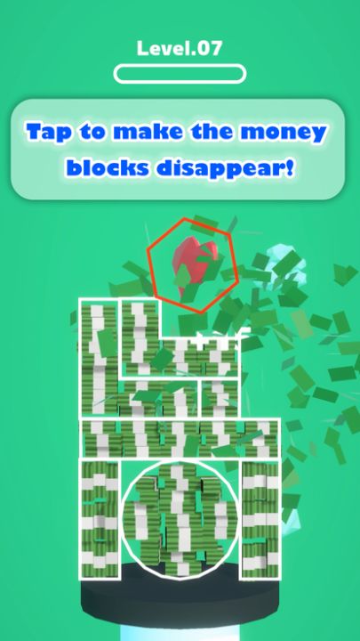 Tap to make the blocks of bills disappear!