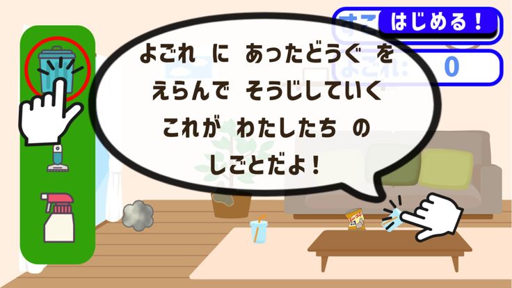 汚れに合った掃除用具で掃除をするだけの簡単ゲーム!