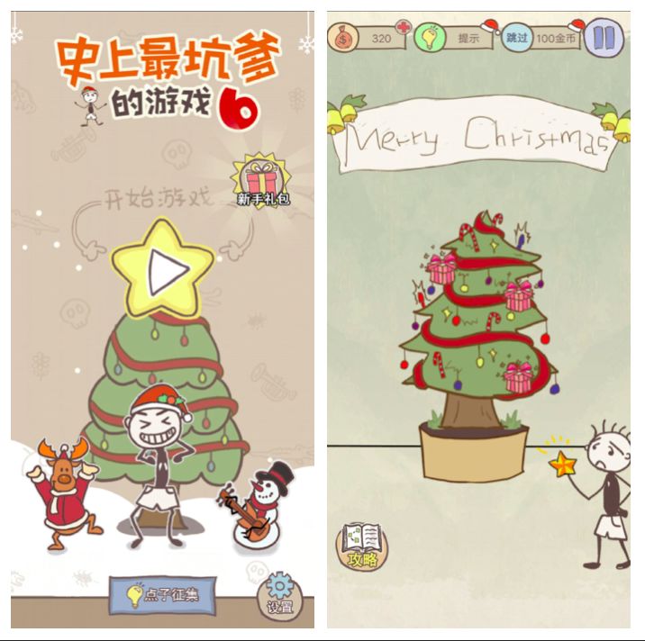 在小孩纸心里,每年最开心的事,莫过于各种各样的节日,因为在节日里,即便最严厉的长辈,也会宽容的让你开开心心的玩耍。今天是12月24日,也就是人们常说的“圣诞节前夕”、“平安夜”,在个特别的日子里,让史小坑带你走进《史上最坑的的游戏6》、这款以圣诞节为主题打造的趣味解谜游戏。