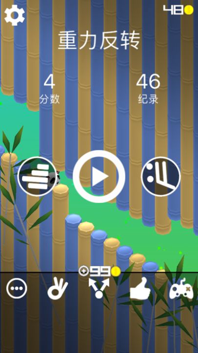 不断颠倒重力才能前进的游戏,感觉在给大脑做运动有木有,很别致呢!熊猫在竹林里穿梭,通过颠倒重力让它避开障碍并收集到金币,没错,触摸屏幕任何地方就可以控制了,简单得不得了。同时,你有机会通过收集金币解锁更多的角色哟,甚至有很惊人的角色!我已经羞红了脸好吗?