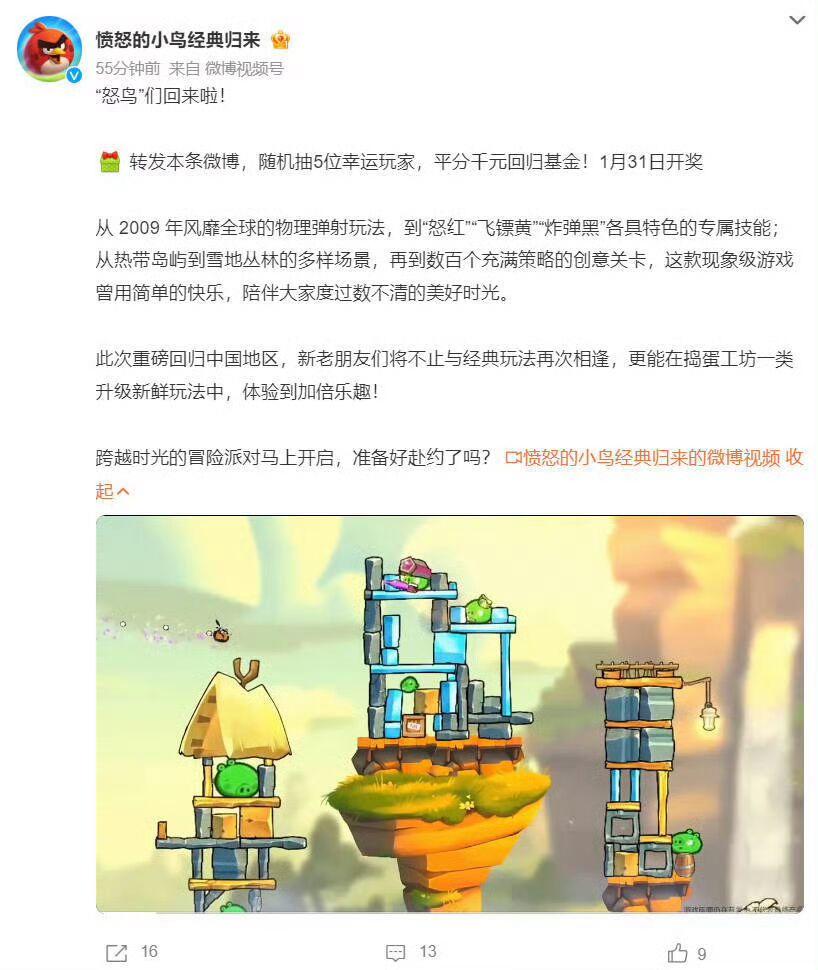 DNA动了,愤怒的小鸟官宣重返中国市场!
