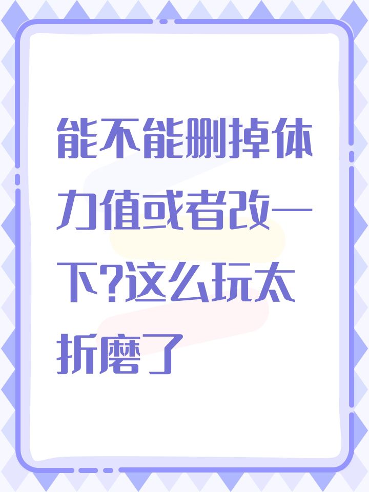 我忘了在问卷建议里填这个了,体力值太烦人了一天只能玩10分钟左右一点也不爽了! 能不能取消掉啊!不改一下大部分玩家玩到500关左右就得全跑光, 本来超级好玩的 已经有很多人说这个了