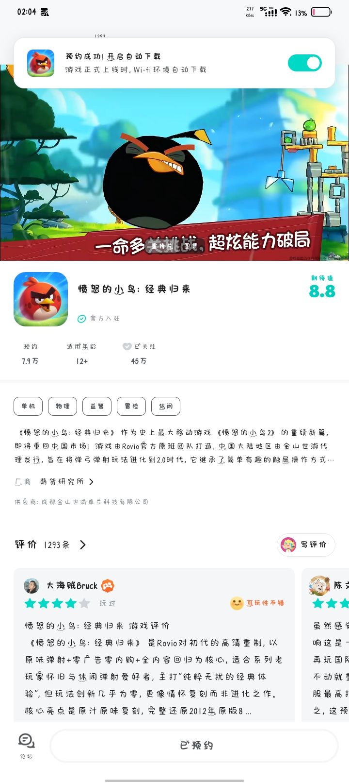 《愤怒的小鸟》官方宣布将正式回归中国大陆市场,消息一出迅速引发跨代玩家的“回忆杀”。这个诞生于2009年的经典IP,全球累计下载量已突破50亿次,其独特的弹弓弹射玩法曾是智能机普及初期无数用户的共同记忆。#今天游戏圈发生了啥 #愤怒的小鸟经典归来 此次回归同步带来两款新作:《愤怒的小鸟:经典归来》:在保留核心弹弓玩法的基础上,采用3D引擎升级画面表现,并加入动态关卡与魔法系统,兼顾怀旧与创新。
