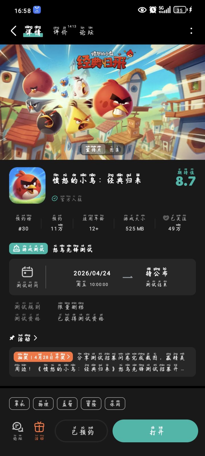 试玩愤怒的小鸟测试版