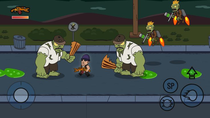 控制杆进行移动,发射键为主要攻击,还有反击,SP技能,跳跃。