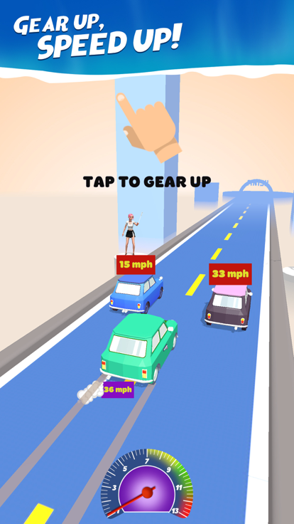 Pass through the green gates to increase your speed! As the speed increase, your car will be evolved! Hit the cars slower than you to increase your sp...