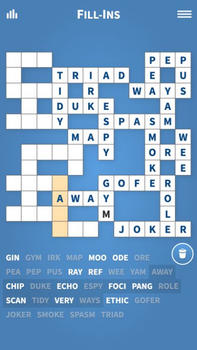 享受Fill-Ins填词游戏,我们的经典益智游戏,它有着成百上千的免费单词填充谜题。如果您喜欢纵横填字谜益智游戏,那么您会爱上Fill-Ins填词游戏的!一个很不错的脑力锻炼游戏!