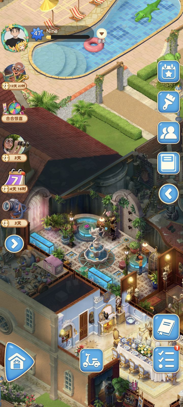 1、蓝色宝箱和棕色宝箱请攒2个合成2级再开。之前看论坛说开1个1级,留最后一下再与另一个合成,会重置次数,但实际操作下来并不会,而且2级宝箱会掉落2级零件,这样就很亏。2、同理,小猪存钱罐请攒到4级再开(剪刀用法还未实验,测试后再补充)。3、推荐使用fandom wiki搜索merge mansion,再翻译成中文,提前看每个区域任务需求,有针对性的使用能量,避免乱合成占用格子。4、经验、金
