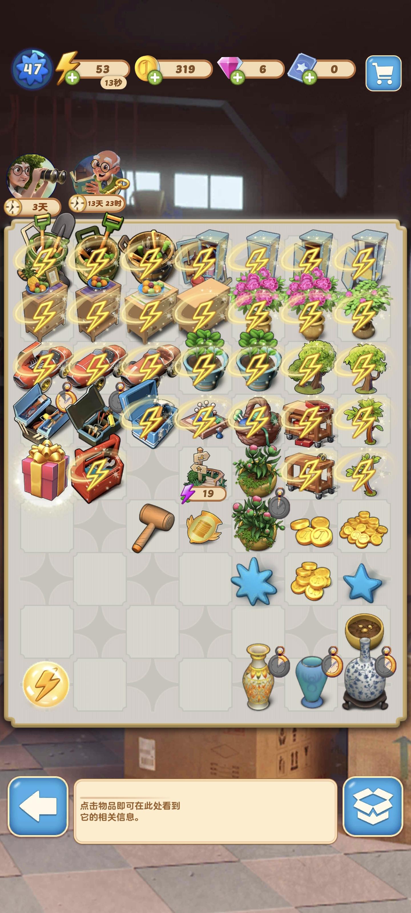 1、蓝色宝箱和棕色宝箱请攒2个合成2级再开。之前看论坛说开1个1级,留最后一下再与另一个合成,会重置次数,但实际操作下来并不会,而且2级宝箱会掉落2级零件,这样就很亏。2、同理,小猪存钱罐请攒到4级再开(剪刀用法还未实验,测试后再补充)。3、推荐使用fandom wiki搜索merge mansion,再翻译成中文,提前看每个区域任务需求,有针对性的使用能量,避免乱合成占用格子。4、经验、金