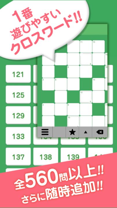 縦8マス横8マスから、縦15マス横15マスまでのクロスを用意しています。