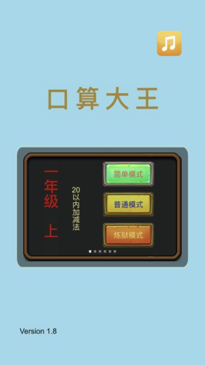 以人教版小学数学为基础的一款数学口算练习游戏---内容包括:一年级上: 20以内加减法。一年级下:100以内加减法。二年级上:表内乘法 + 100以内加减法 。二年级下:表内除法+100以内混合运算 。