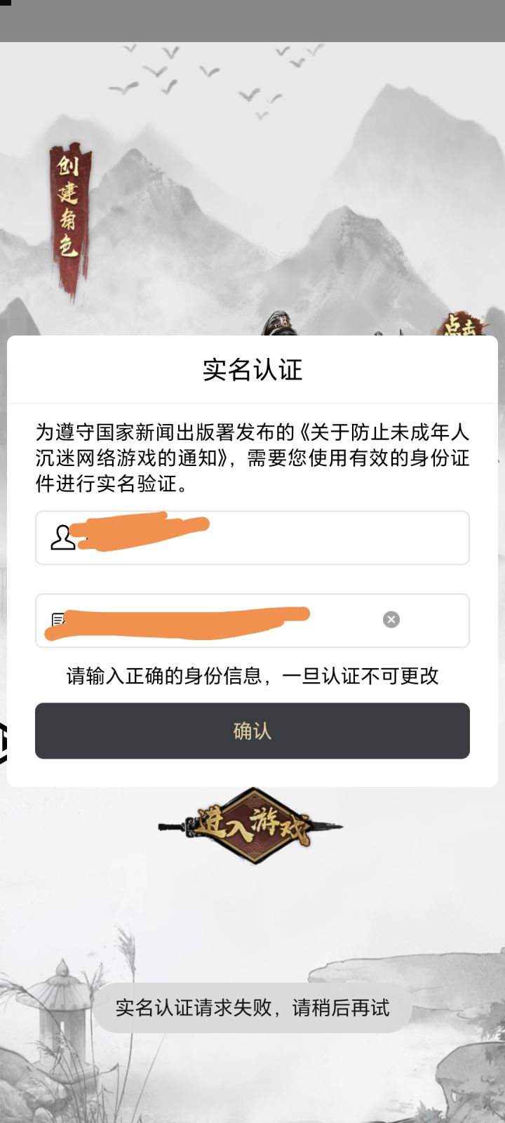 进不去游戏,实名认证不了