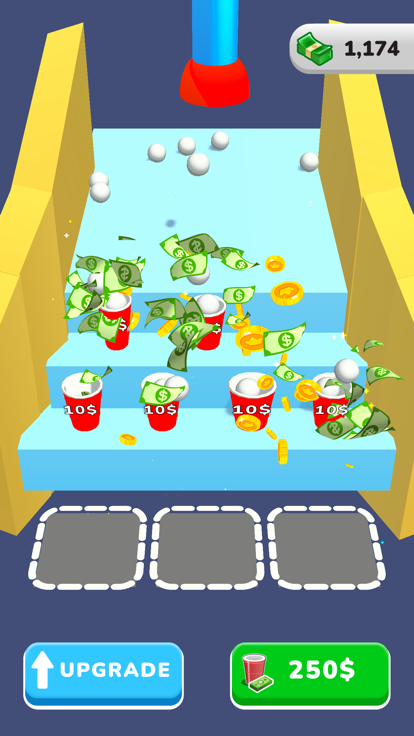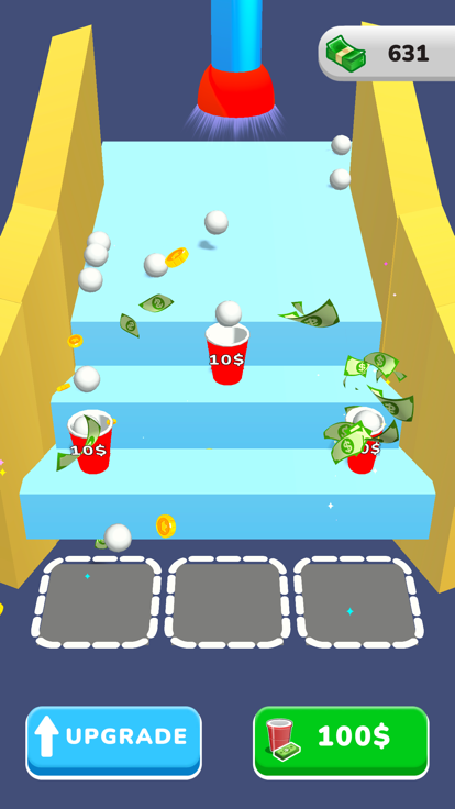Let the balls bounce off the stairs, merge the cups and strategically place them on the stairs. Those glasses are your destiny!